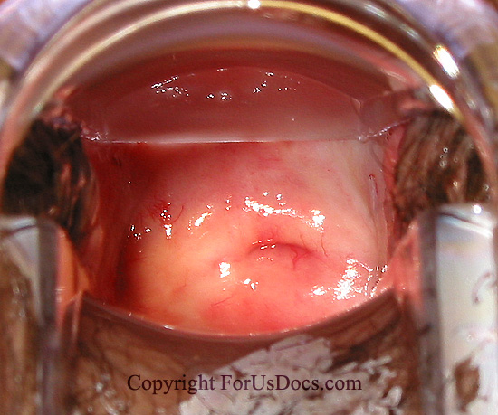 cervical os from radiation effect. The vaginal mucosa is flattened